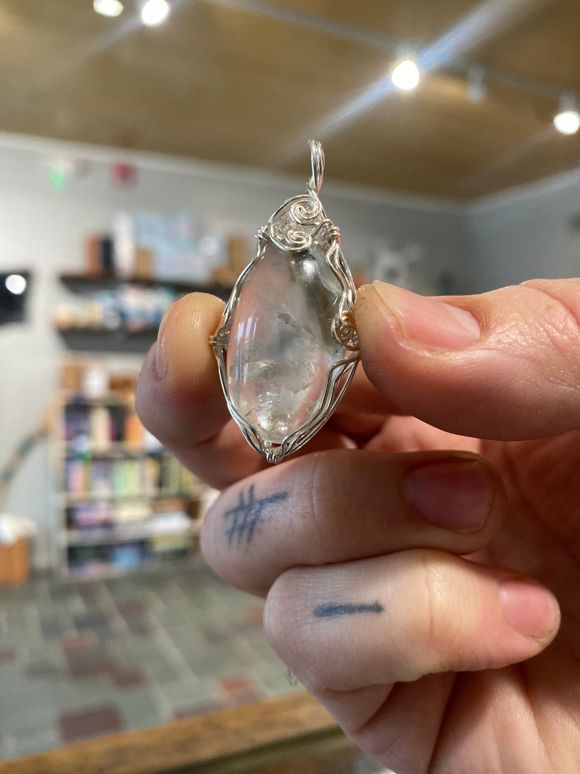 Blue Tara Quartz from Brazil wrapped in sterling silver and capped with a crystal clear Herkimer Diamond to amplify the energy.