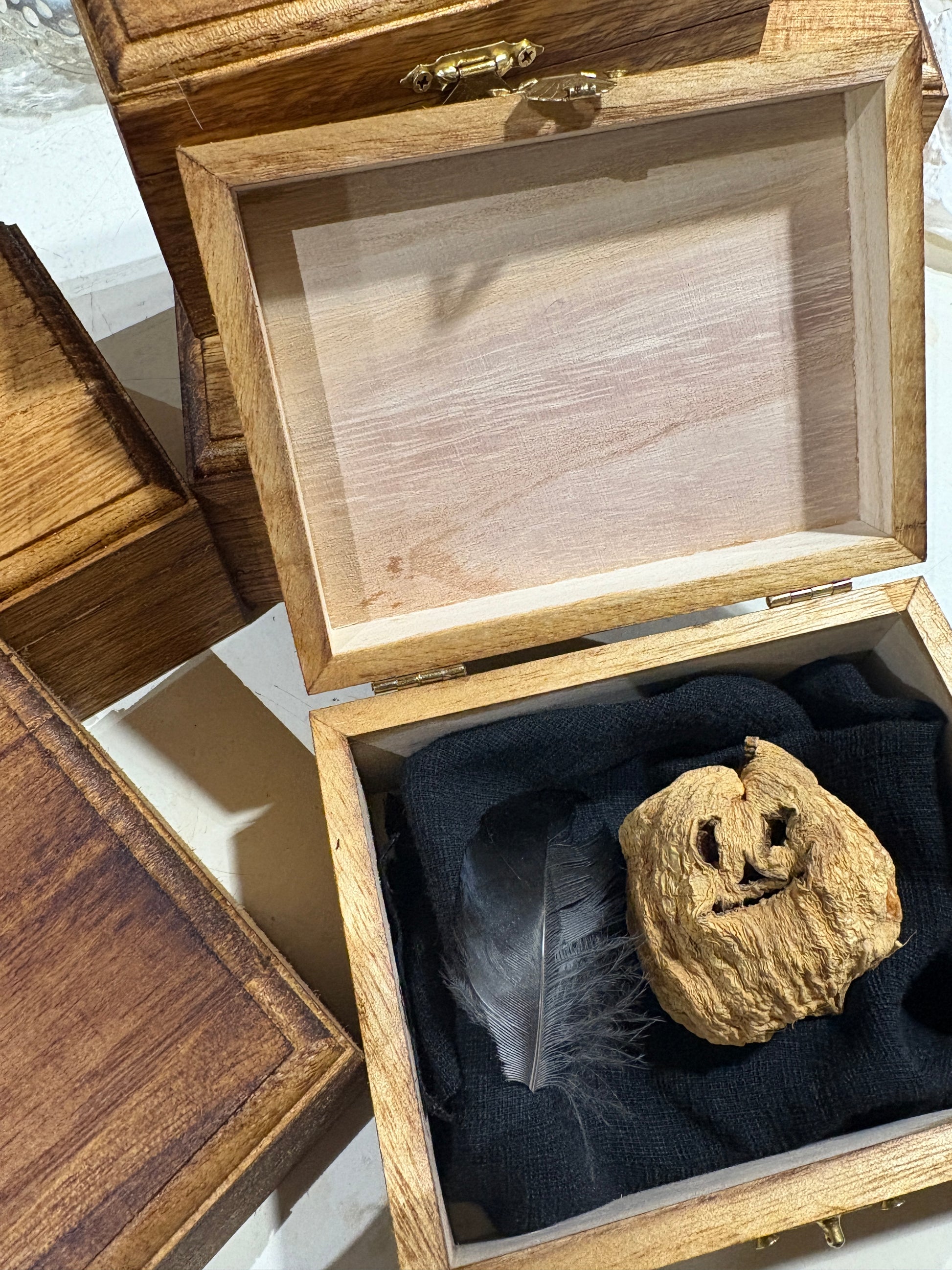 Adopt a Turnip Spiritus carved by Björn on Samhain in 2024. Comes with it's own tar stained box and a raven feather. In the tradition of Samhain turnip carving that predates pumpkin carving of Turtle Island.
