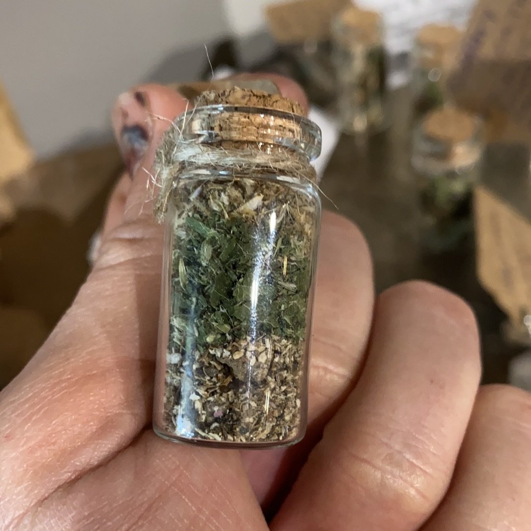 Handmade and blessed by justin. Carry this little vial with you or place in a special place to manifest.