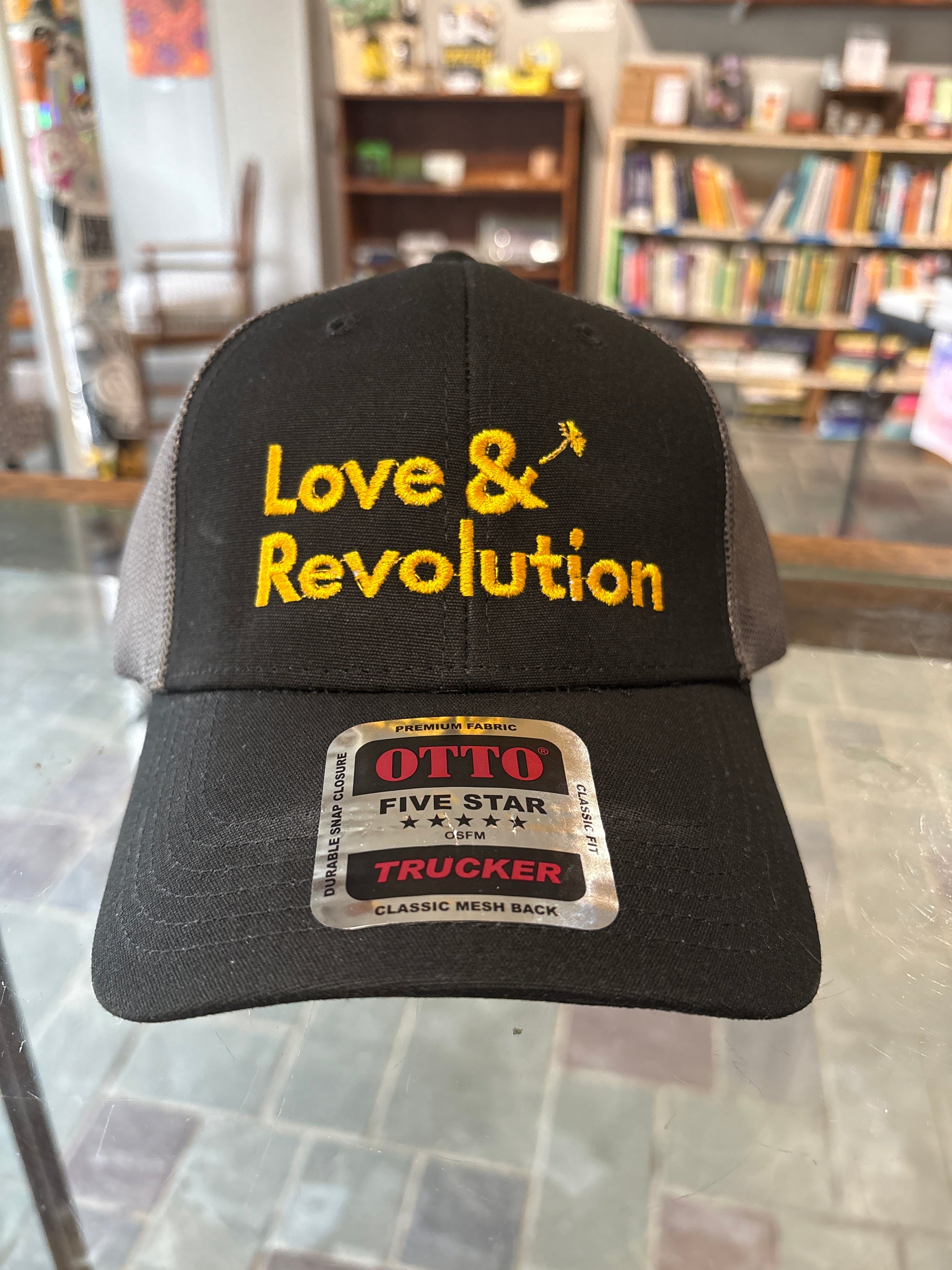 Our "Love & Revolution" design on a trucker hat just in time for warm weather.