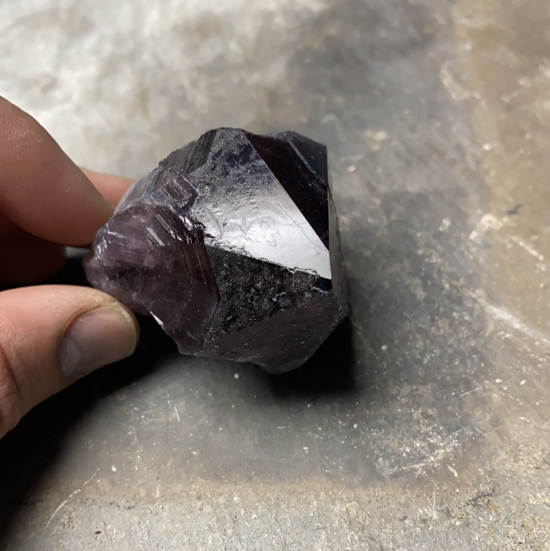Scufflin Acres Amethyst is known for its deep purples. The purple almost turns black in places. Some mineral staining adds other dimensions to these beautiful crystals that look like they are still growing.