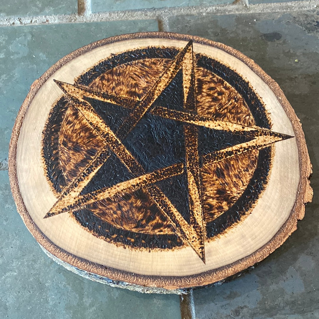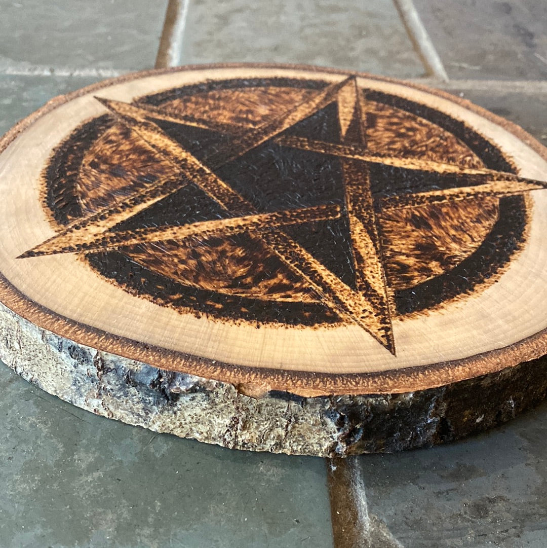 1-sided pentagram altar handmade by local artist, "The Witch of The Three" from a Maine-grown Aspen. Wood burned pentagram for your ritual needs.