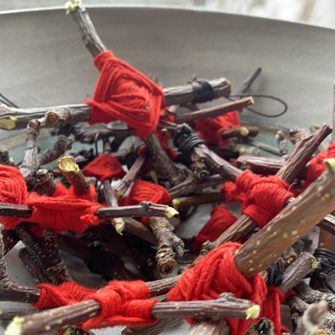 “Also known as a Bride’s cross. The practice of tying rowan wood to farm animals as a protection charm against the evil eye is mentioned and condemned by King James I in his book ‘Demonology’. Scarborough Museum has a number of Rowan items, all from Yorkshire:- a forked rowan twig (E. Yorkshire, 1860) carried in the pocket as a charm against witchcraft; three rowan crosses (bound with red thread) used to keep witches away, either hung over the door of a house or farm building or carried in the pocket; also two rowan loops, which were hung on railings to keep away witchcraft and evil (Castleton, Yorkshire) (information supplied by Tabitha Cadbury - see her report ‘The Clarke Collection of Charms and Amulets’ in the Museum of Witchcraft and Magic library).