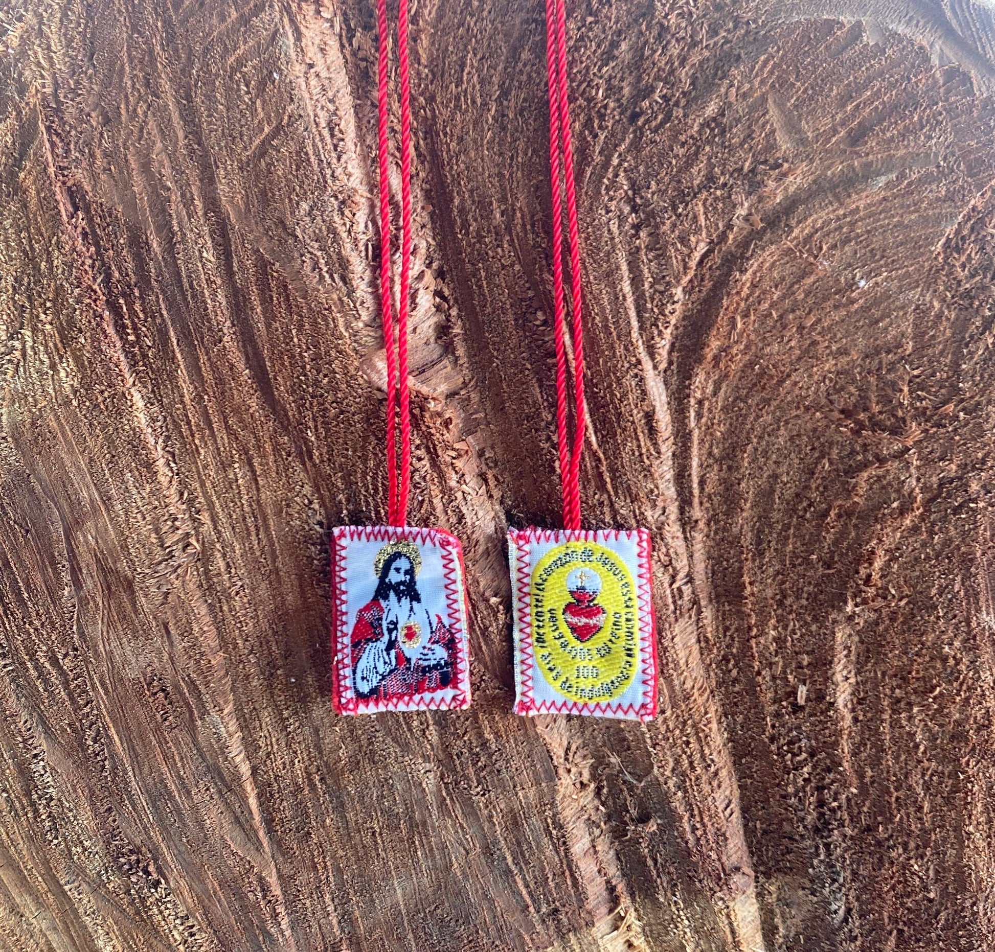 Handcrafted Red Scapular with image of Sacred Heart of Jesus