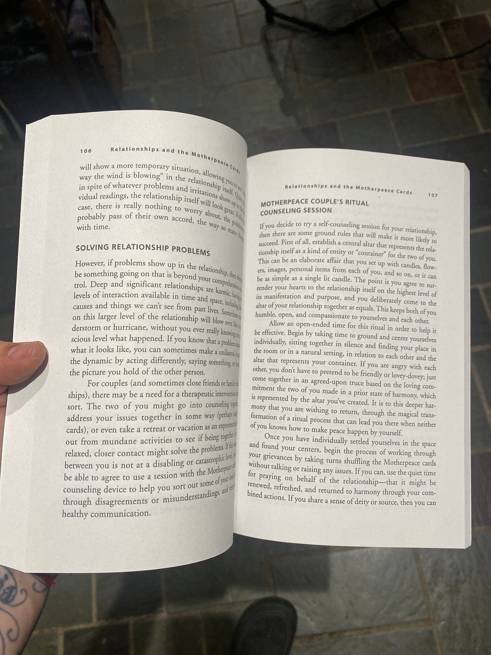 A spiritual guidance system with rituals to tap into and manifest feminine divine energy through the Motherpeace deck