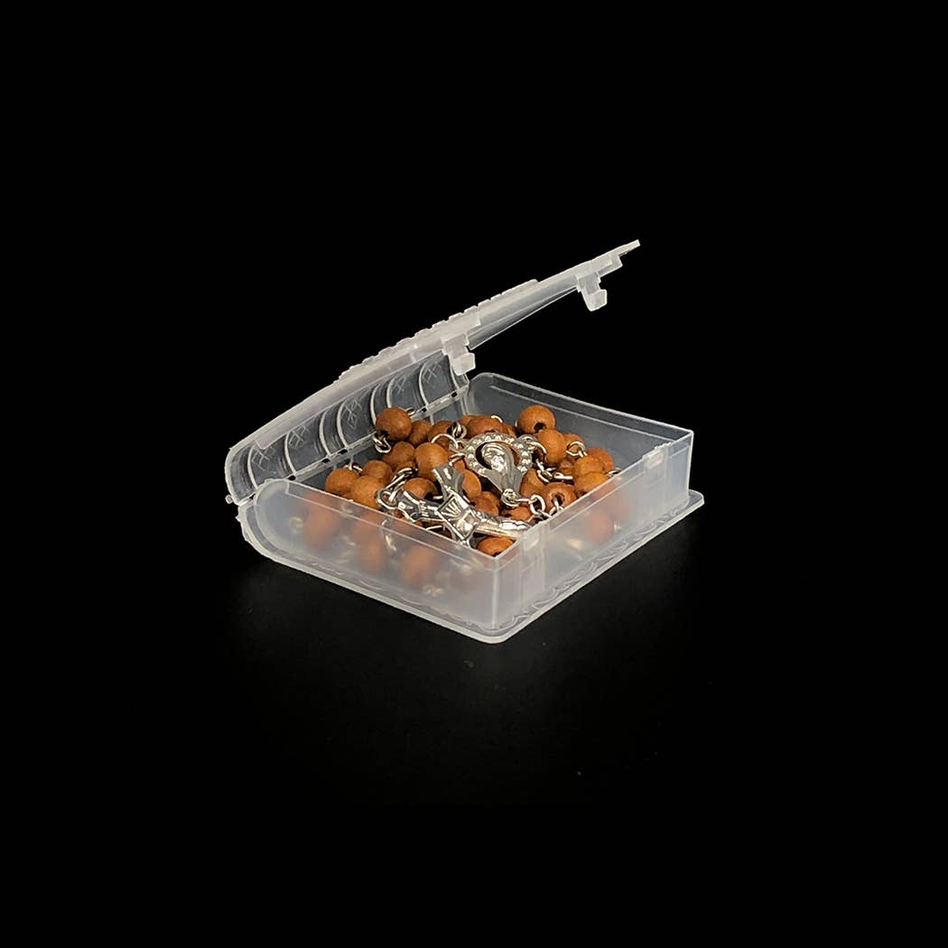 Open this hard plastic case and enjoy the pleasant rose fragrance delivered by this wooden rosary perfect for any age.
