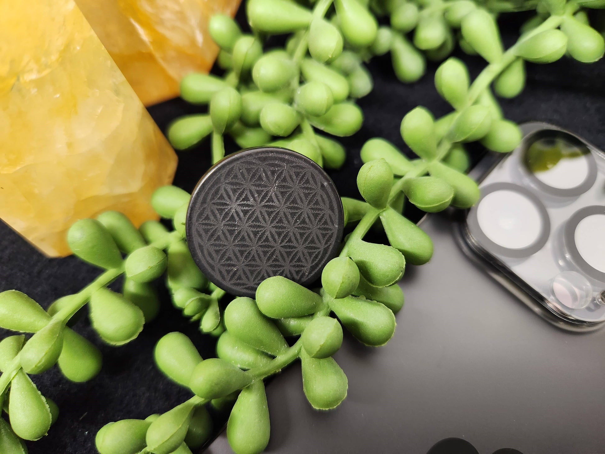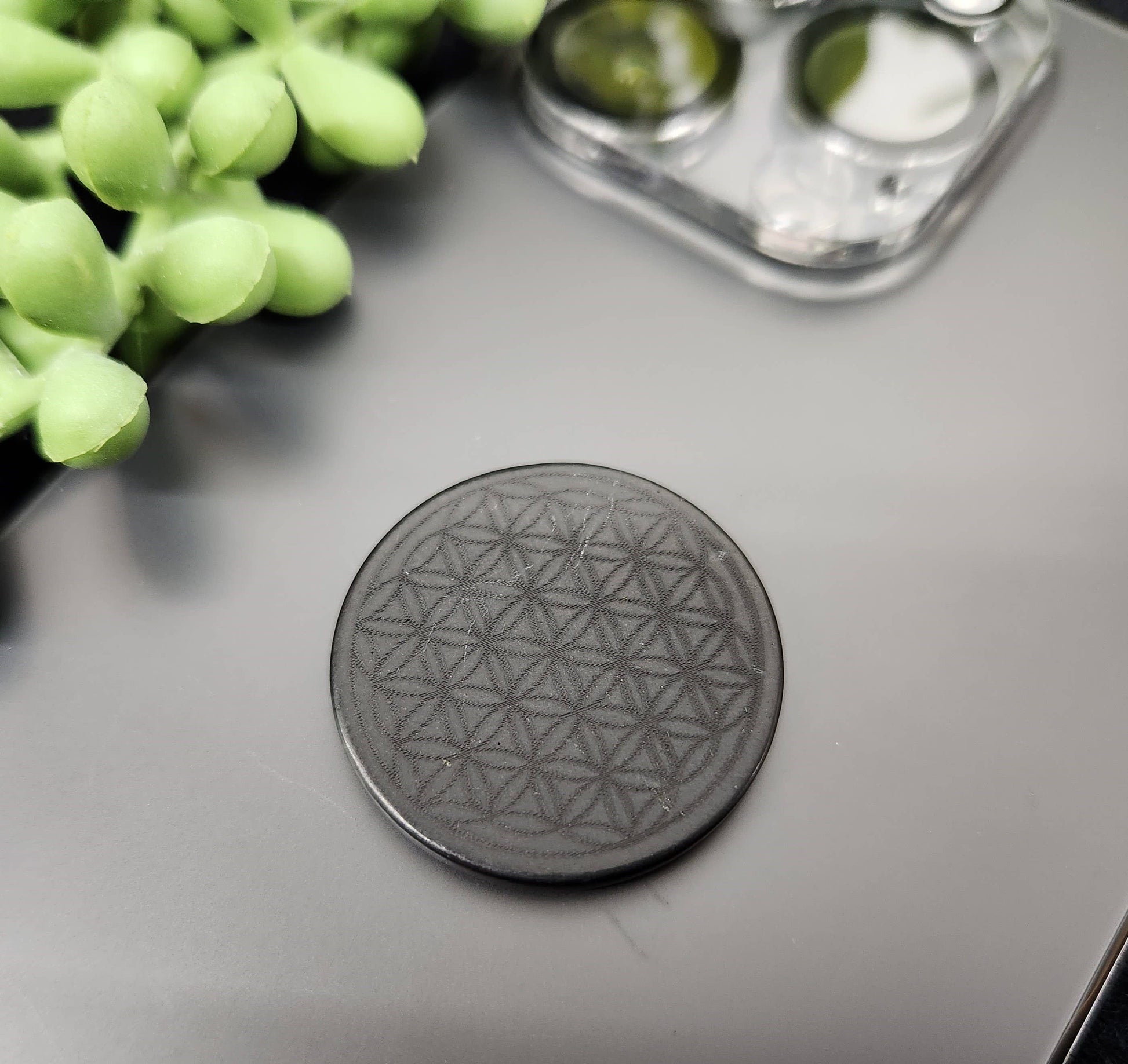Shungite EMF Cell Phone Tile Engraved w/Flower of Life