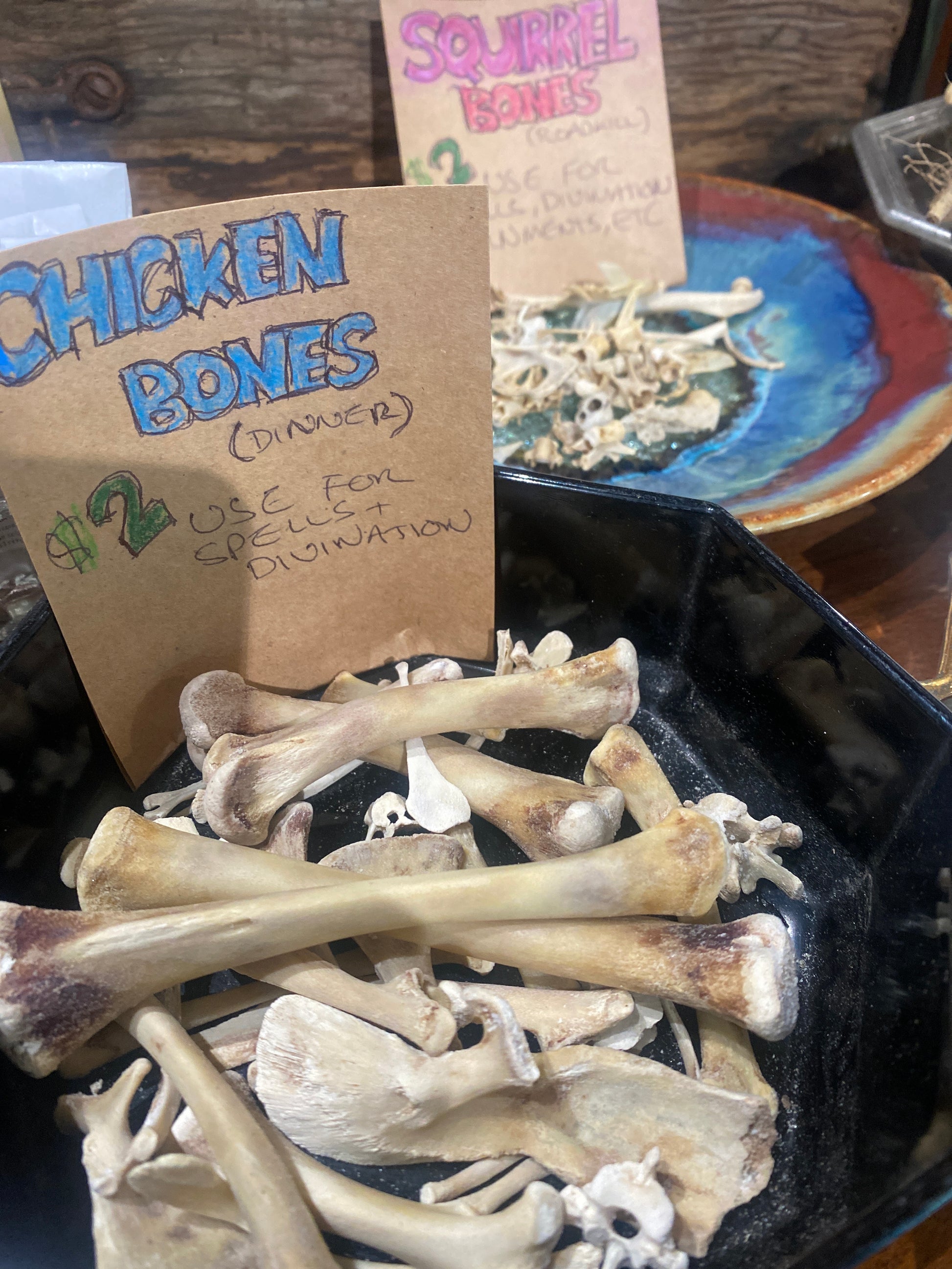 Our bones are ethically sourced from legal roadkill or dinner. All bones are ritually cleaned and the spirit of the animal is blessed by justin.