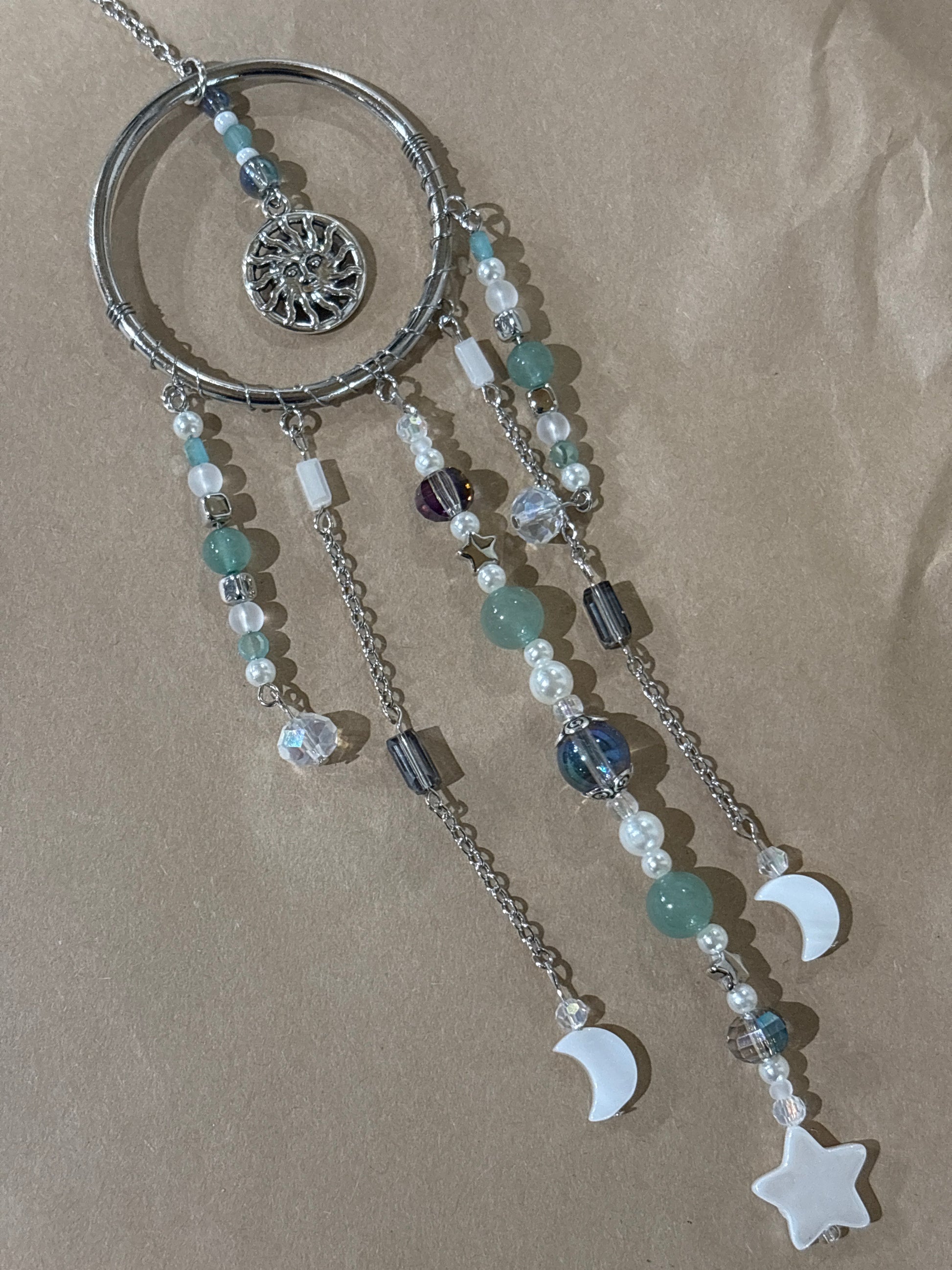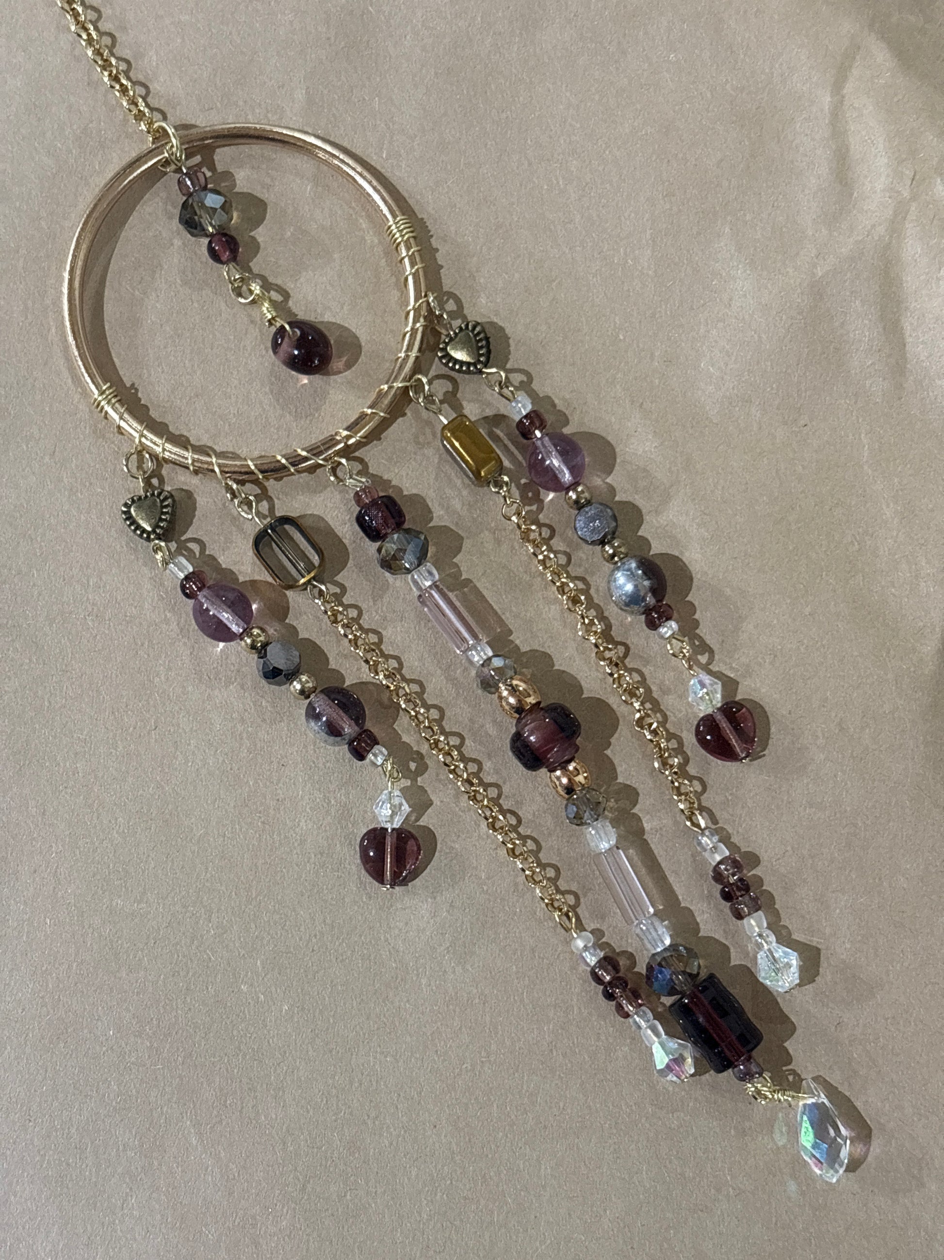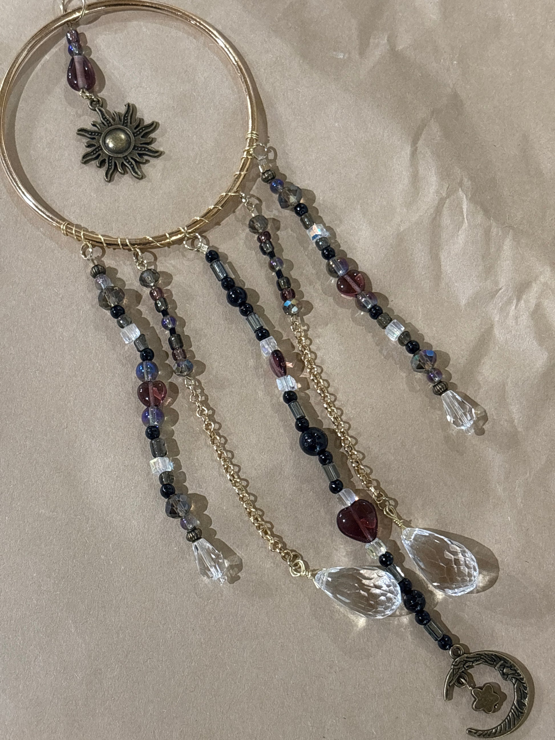 Brighten your day or someone else's with a spirit circle. The crystals and glass shimmer in the sun to create joy even on a cloudy day.