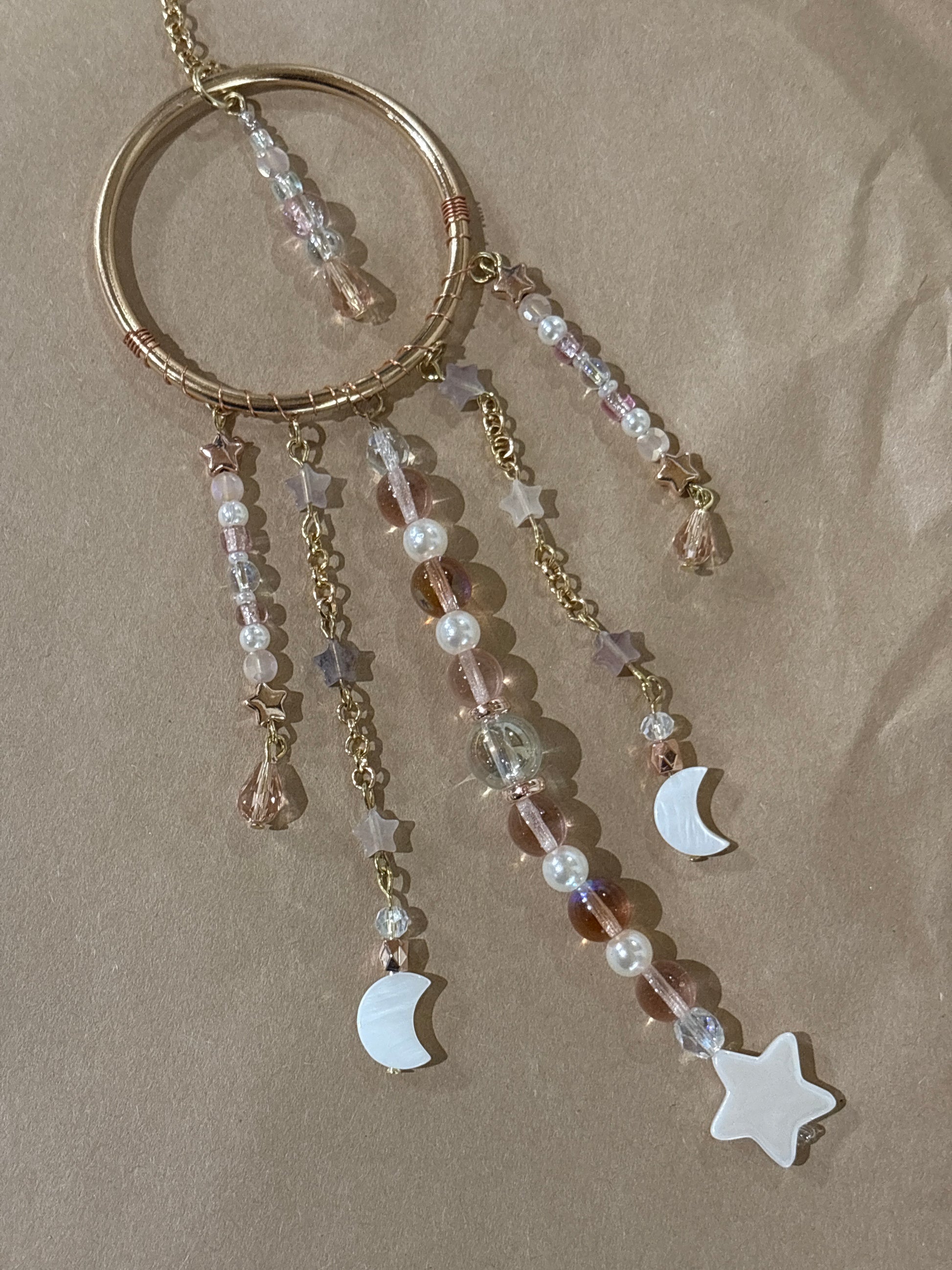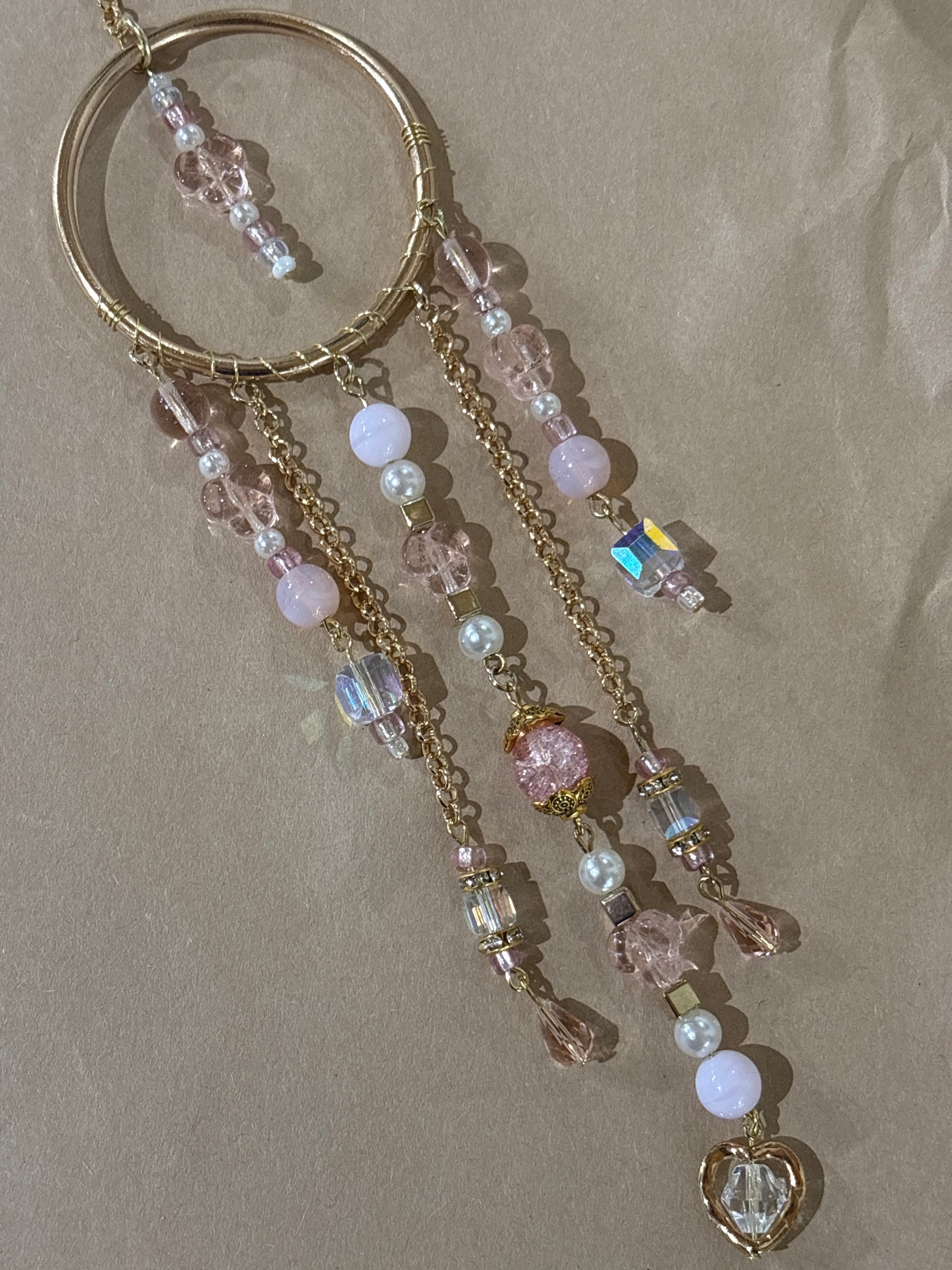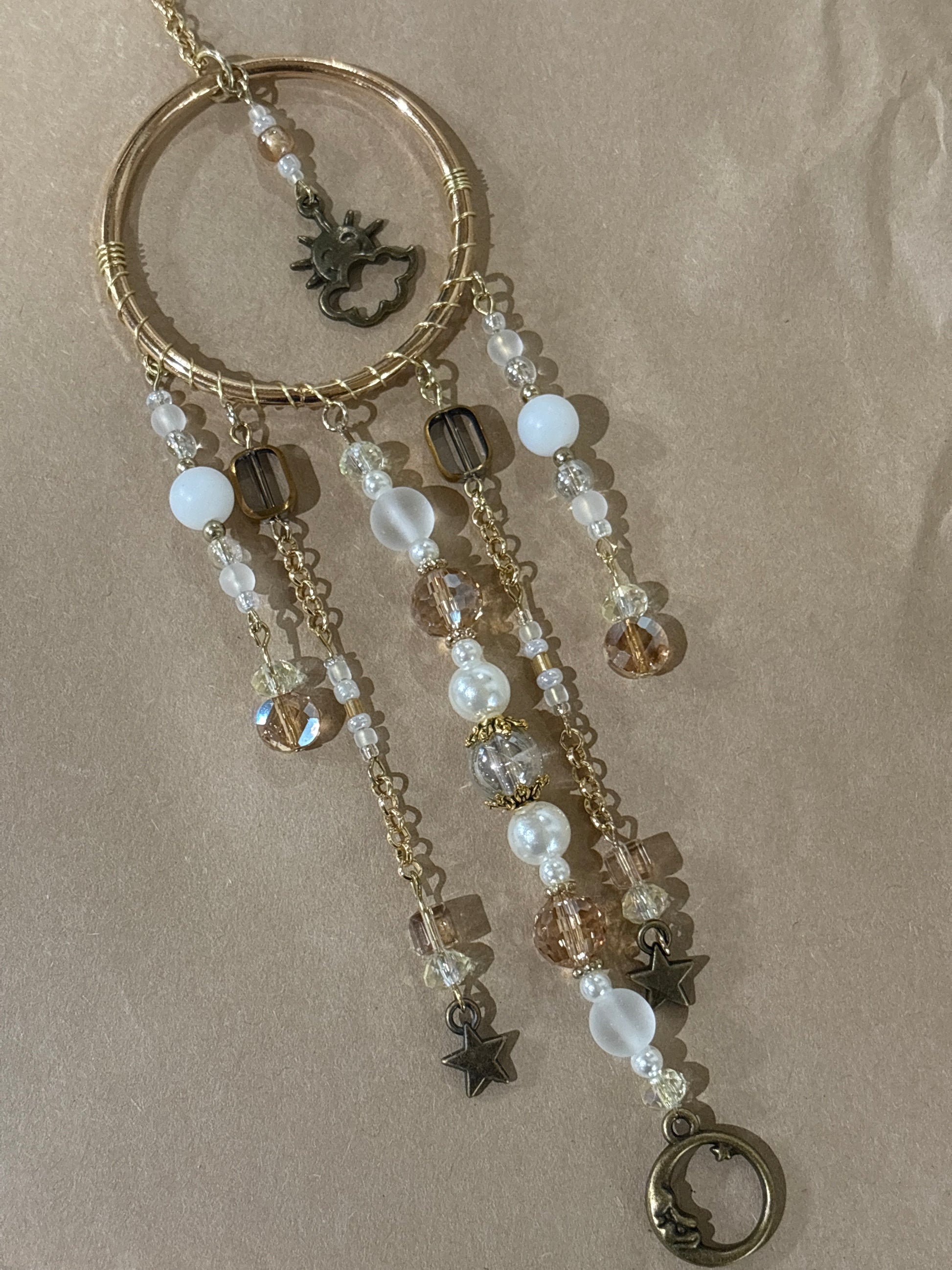 Brighten your day or someone else's with a spirit circle. The crystals and glass shimmer in the sun to create joy even on a cloudy day.