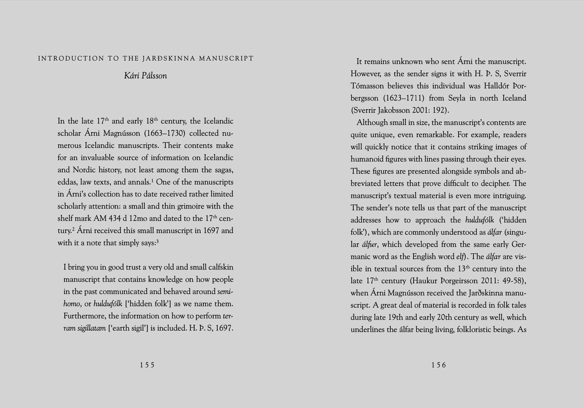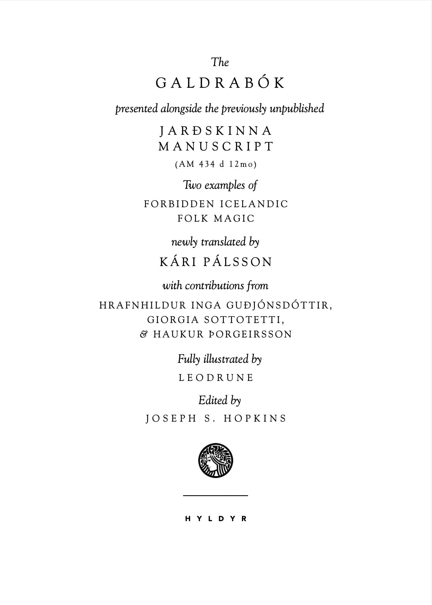 “Write these letters on white vellum with your blood.” Once forbidden by the church on penalty of severe punishment and even death, Iceland’s occult symbols have been subject to a remarkable transformation over the past few decades: They can now commonly be seen used as tattoos, in media such as video games, and even as components of business logos. Most books containing these symbols, known as grimoires, were confiscated and destroyed. However, a small number survived, most famously the Galdrabók. In this new and approachable edition of the Galdrabók, folklorist Kári Pálsson presents his original English translation and an edition of the grimoire’s original Icelandic text beside another grimoire never before published: the unique and quite mysterious Jarðskinna manuscript.