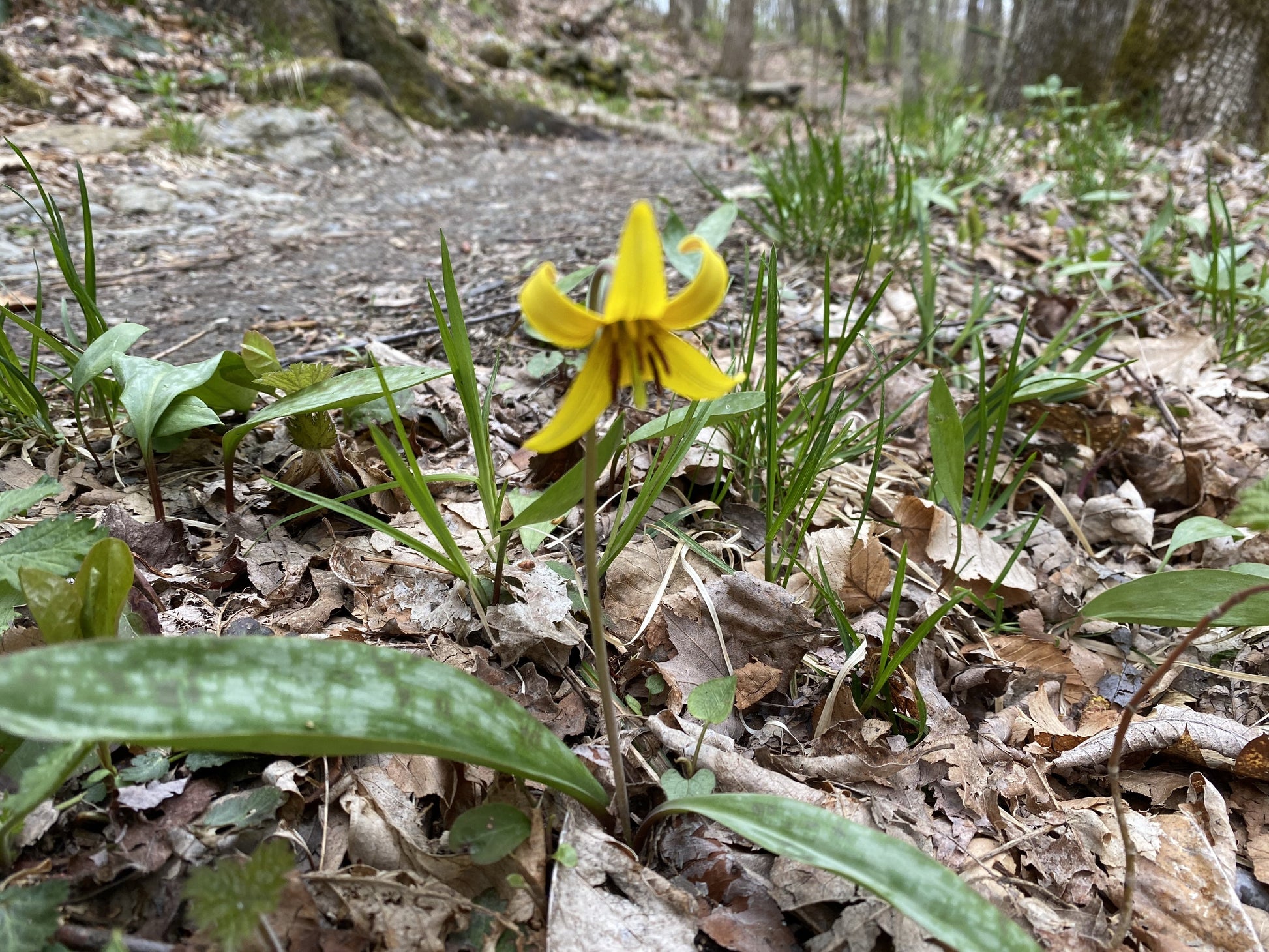 Flower essence is made with: Yellow Trout Lily flowers, water, and a bit of brandy for preservation.